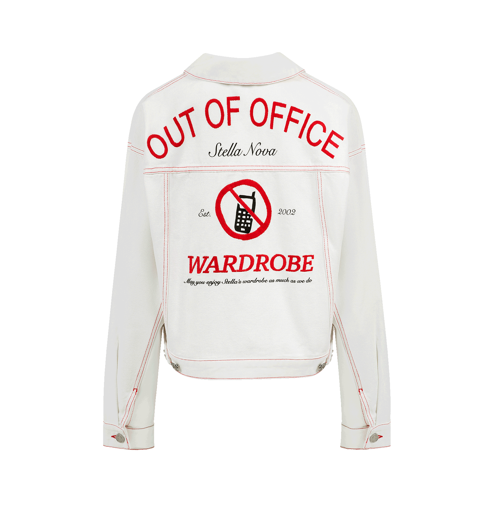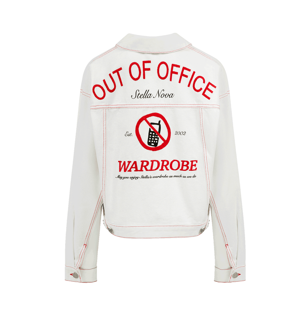 Den Stella Nova Out Of Office Loose Jacket er en kort dongerijakke med teksten OUT OF OFFICE på ryggen. Denne iøynefallende jakken er perfekt for å fullføre ethvert antrekk!